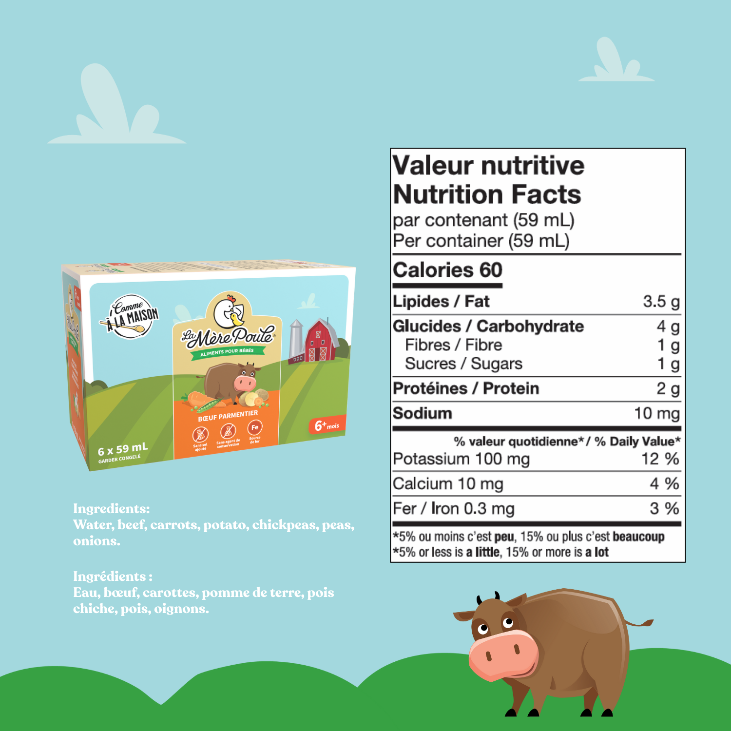 Le hachis parmentier, plat traditionnel apprécié par de nombreuses cultures dans le monde, contient des pommes de terre et de la viande. Il a été inventé par un pharmacien français, Antoine Augustin Parmentier, qui souhaitait lutter contre la famine avec cette recette. Même si les choses ont bien changé depuis, on continue d’apprécier le parmentier de ce côté-ci de l’Atlantique. La pomme de terre, avec sa pelure ou sans, contient de la vitamine B6, qui joue un rôle dans la production de globules rouges et aide au développement du cerveau et du système nerveux.