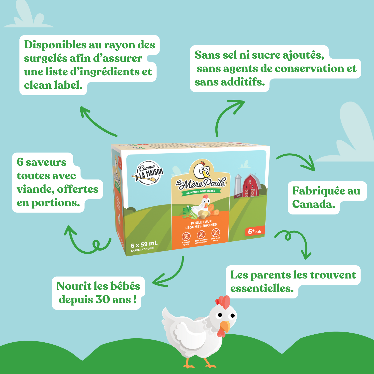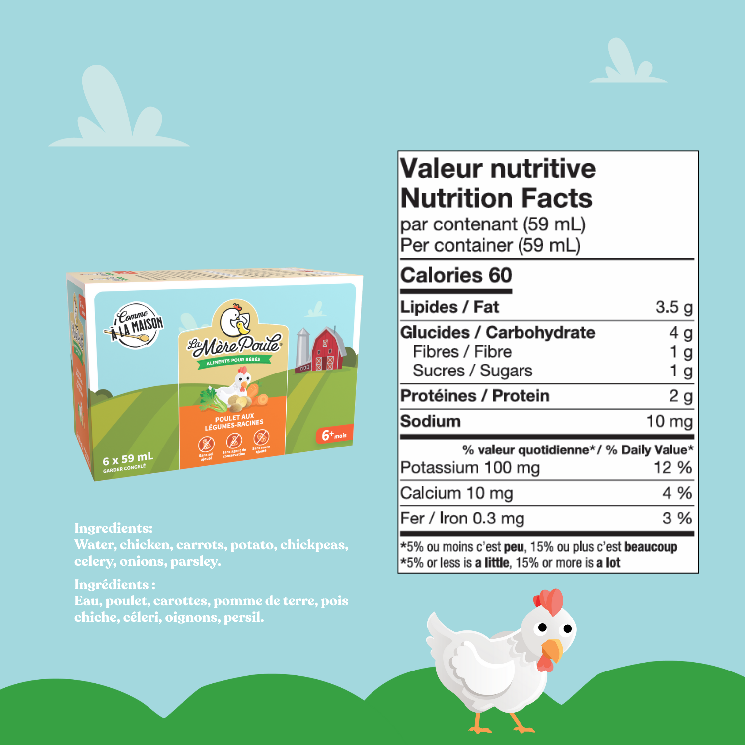 Notre poulet aux légumes-racines est un plat qui va charmer bébé. La purée combine du poulet et de délicieux légumes d’hiver permettant à bébé d’apprivoiser les saveurs de ce mets réconfortant.