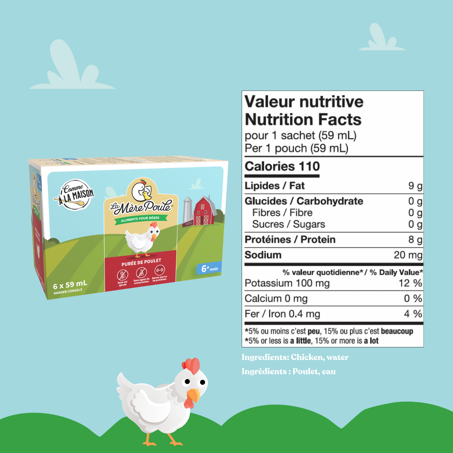 Des protéines, du fer et du potassium, c’est le trio gagnant du poulet. Les bébés l’adorent pour sa saveur, et les parents, parce que le potassium qu’il contient favorise le bon fonctionnement des cellules de bébé, la transmission de l’influx nerveux et la contraction musculaire.