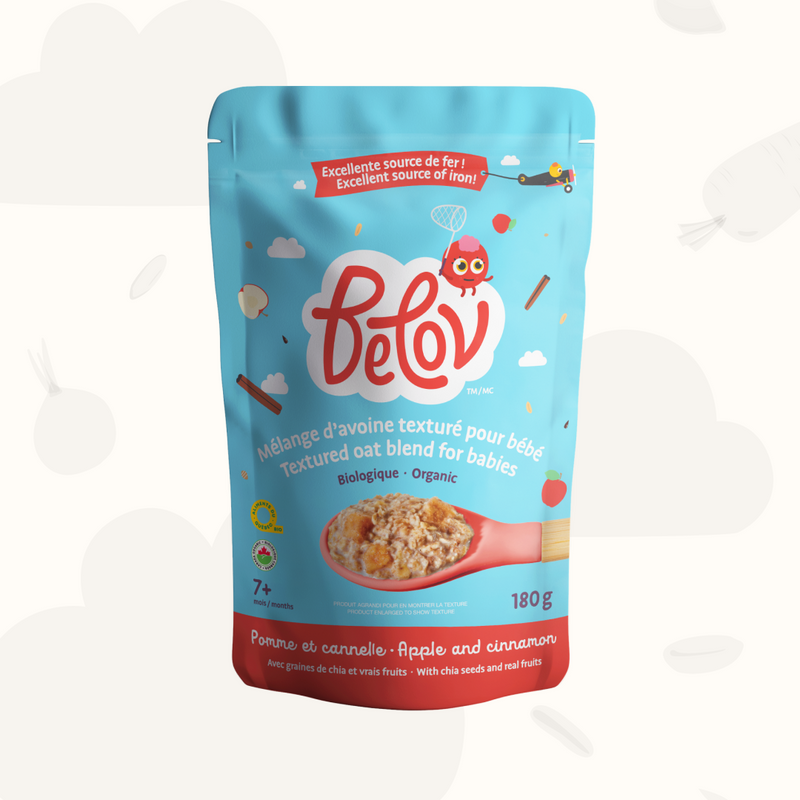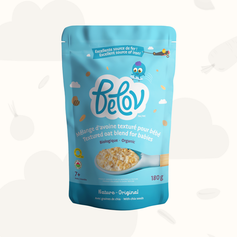 En ce qui concerne nos mélanges d’avoine, nous souhaitions offrir à bébé l’expérience réconfortante d’un gruau plus traditionnel ! Qui plus est, Belov a à cœur d’innover !! Mettre sur les tablettes une autre céréale traditionnelle, que nous pourrions qualifier « en poudre », n’était pas aligné avec la mission de Belov. Nos mélanges savoureux peuvent même être ajoutés aux préparations préférées de bébé : muffins, pancakes, etc. ! OHH YESSS ! En étant enrichis de fer, nous vous aidons à contribuer à l’apport quotidien recommandé ! OHHH WOOOWWWW !
